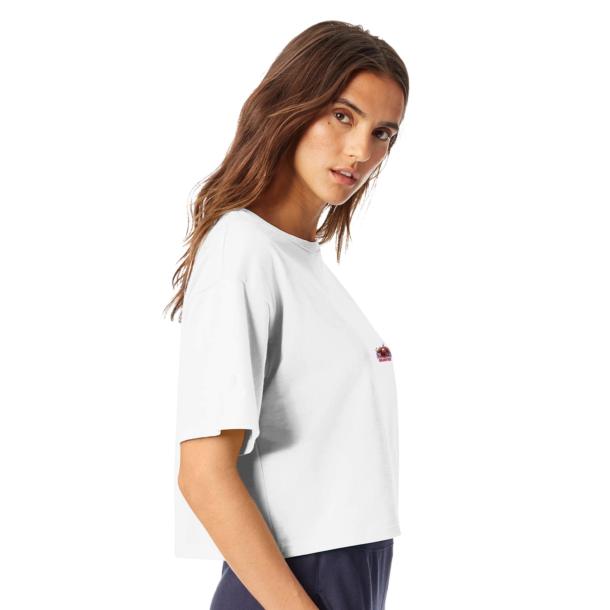 • This t-shirt is designed with a comfortable and stylish cropped fit, perfect for active or casual wear.